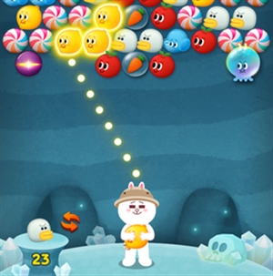 「LINE バブル2」は、バブルを消して敵を倒しながら、いなくなってしまったブラウンを探しに出るアドベンチャー系パズルゲーム。